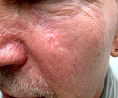 Rosacea is a chronic disorder of the blood vessels on the skin of the face and typically presents as redness on the cheeks, nose, chin or forehead. This can be constant, have cycles, or flare-ups and remission. All of these can be quite distressing psychologically. Normally as a person reaches the age of 30, the condition worsens, with increasing redness and frequency. Left untreated, blood vessels become noticeable and bumps may appear. Men and women are equally susceptible, but as with most skin conditions, women tend to seek treatment earlier and so have better outcomes.